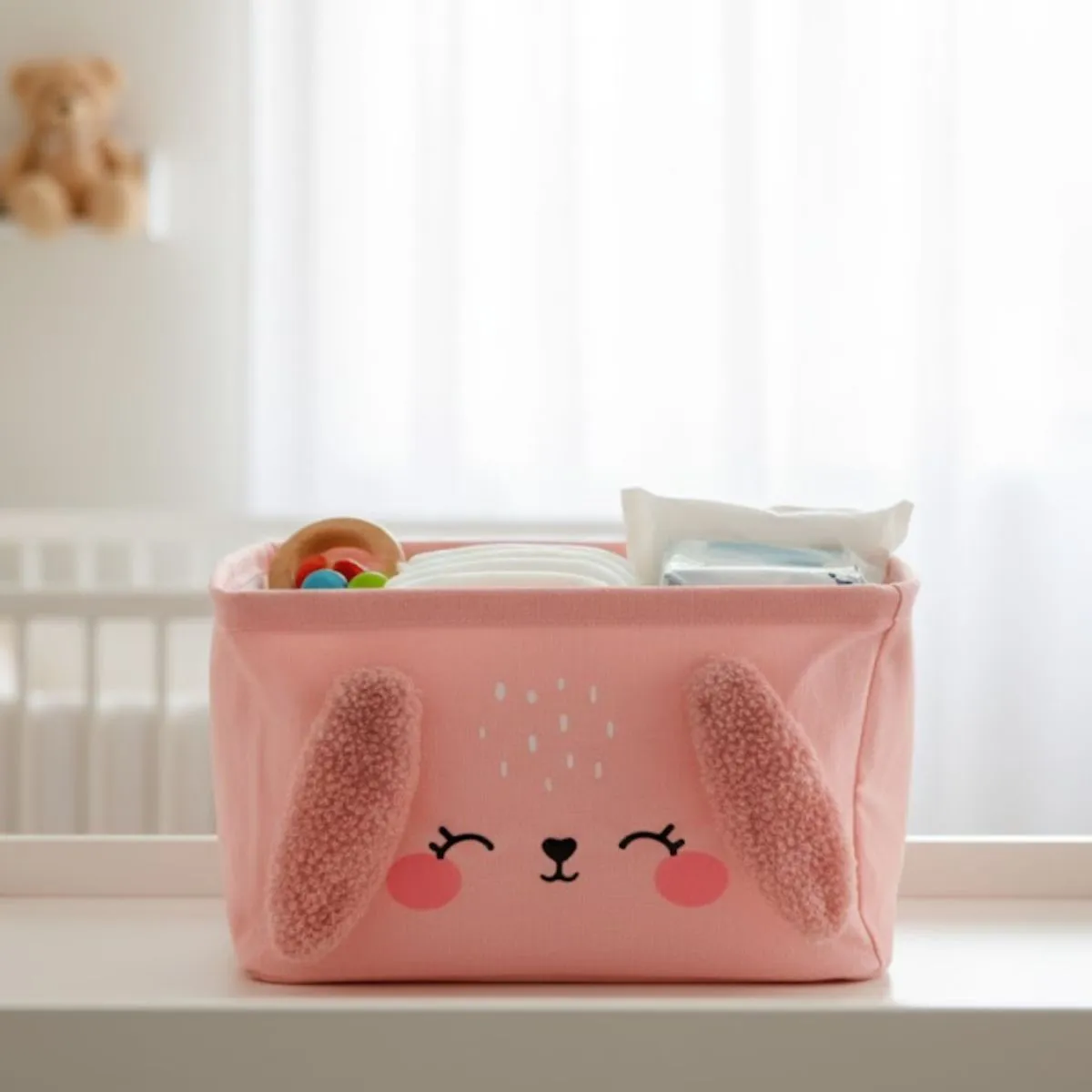 Este contenedor acompaña la organización diaria con un estilo cálido y práctico, manteniendo a mano todo lo que necesitás durante el cuidado del bebé.