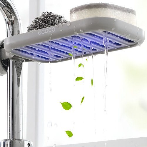 Diseñado para colocar esponjas, cepillos y más, evita la acumulación de agua gracias a su escurridor integrado, manteniendo todo higiénico y libre de malos olores.